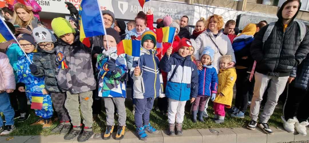 Mii de oameni s-au strans in centrul orasului sa ia parte la defilarea asigurata de aproape 500 de militari, politisti, jandarmi, politisti de frontiera, lucratori SRI, politisti locali, dar si pompieri, prin fata Catedralei Mitropolitane.