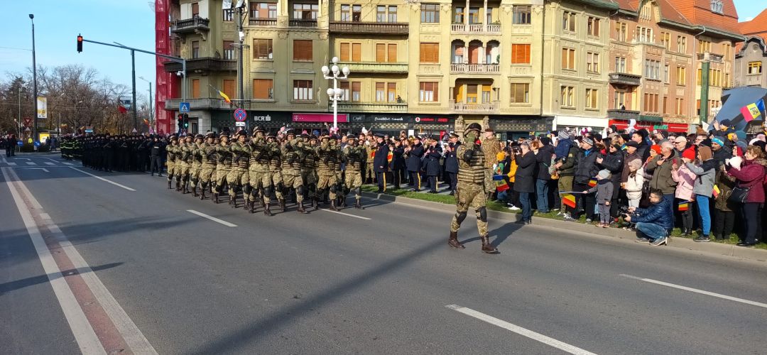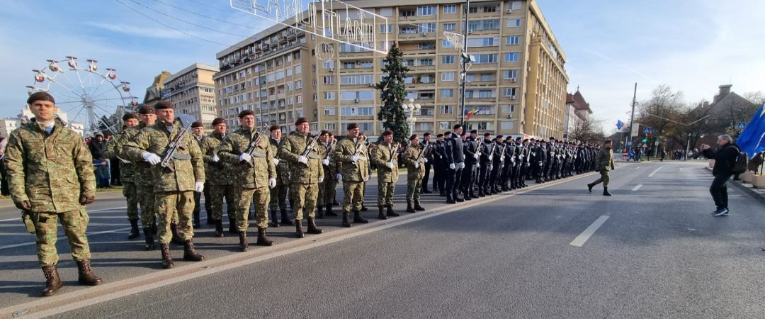 TIMISOARA. Dupa doi ani in care sarbatoarea de Ziua Nationala a stat sub semnul pandemiei de coronavirus, acest 1 Decembrie a insemnat la Timisoara cea mai mare parada militara din ultimul deceniu, potrivit autoritatilor.