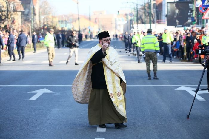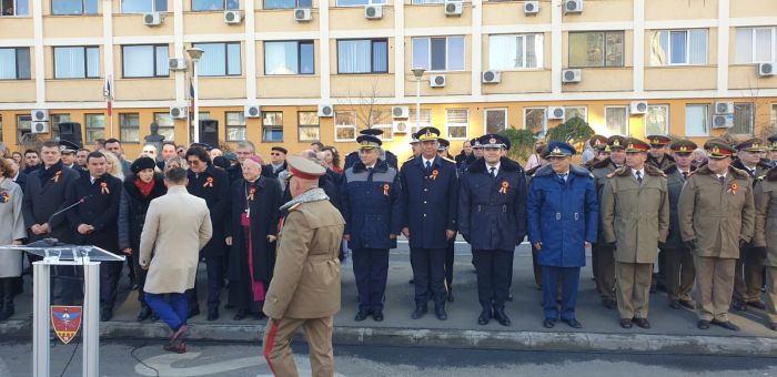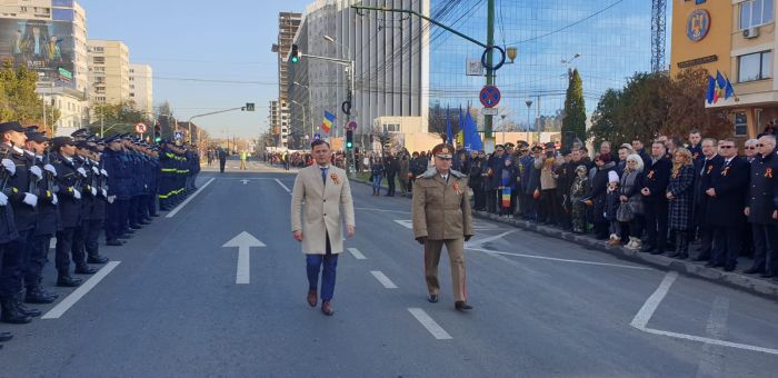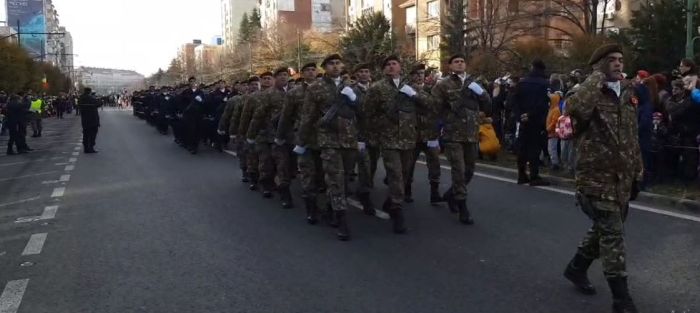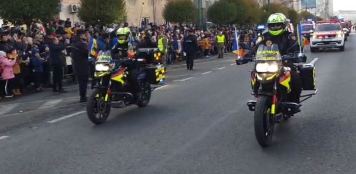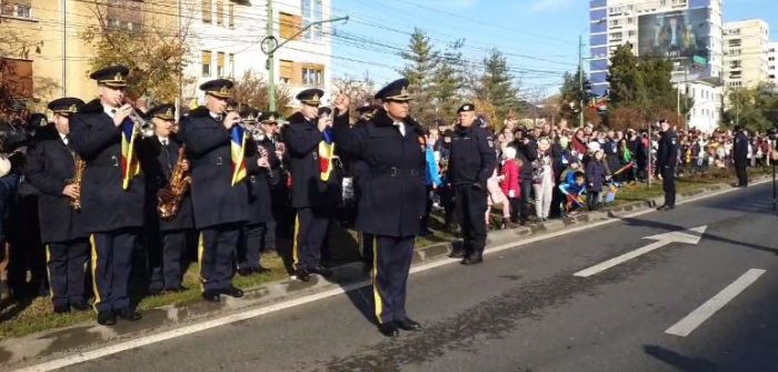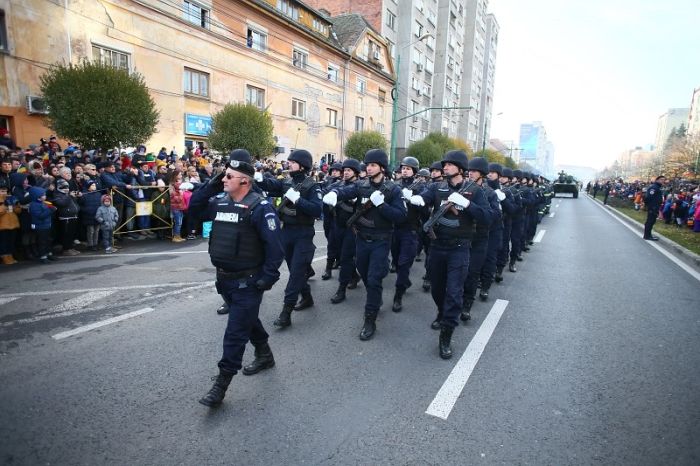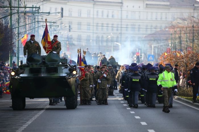 La parada militara de pe Bulevardul Take Ionescu au defilat militarii Armatei Romane, Jandarmeria, Politia, Inspectoratul pentru Situatii de Urgenta si Serviciul Roman de Informatii, Politia de Frontiera, Politia Locala.