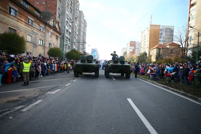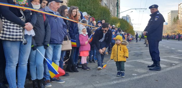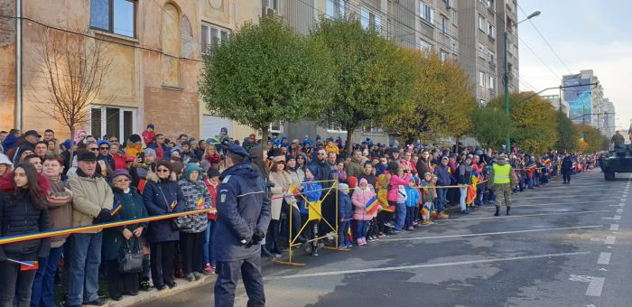 TIMISOARA. Timisorenii s-au adunat cu mic cu mare pe Bulevardul Take Ionescu, sa urmareasca parada militara de Ziua Nationala. Au defilat peste 500 de militari si aproximativ 80 de mijloace tehnice.