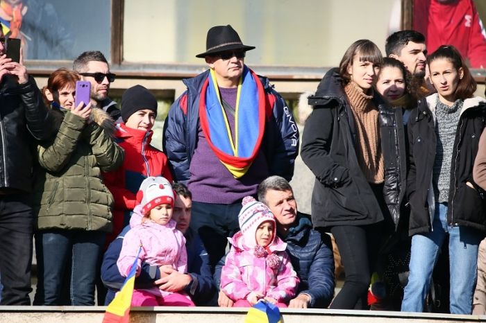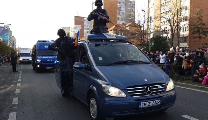 ”Inarmati” cu stegulete si drapele, timisorenii au urmarit cu atentie defilarile militarilor, ale jandarmilor si ale politistilor. Transportoarele blindate, un elicopter, autocamioanele DAC, mijloacele de artilerie, mijloacele anti-tero si alte autospeciale au fost in centrul atentiei duminica la pranz, la Timisoara.