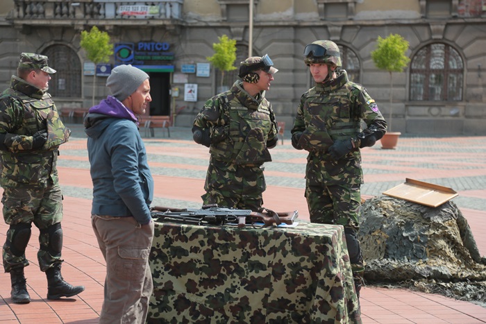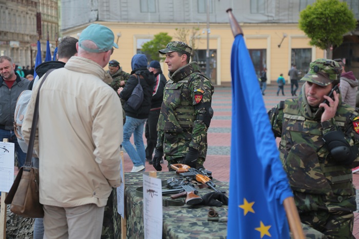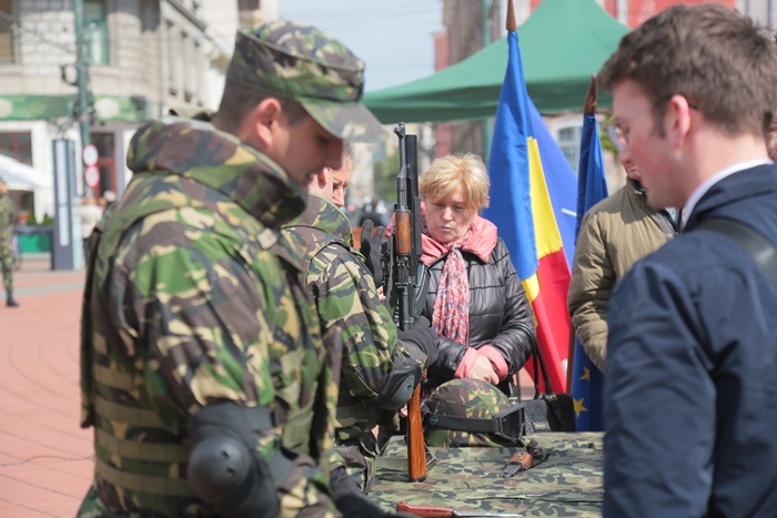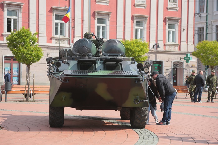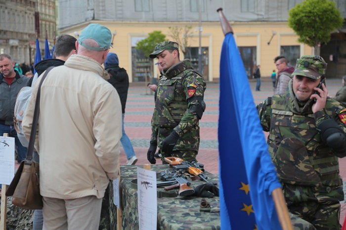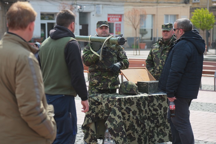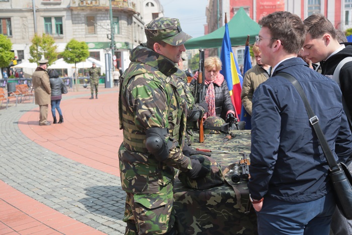 Programul a inceput cu o expozitie de armament pe platoul din piata, dar tot acolo se afla si un atelier de prezentare a unor tehnici de supravietuire. Cei care vor o amintire, pot face poze alaturi de insemnele Armatei Romaniei si ale Brigazii 18 Cercetare Supraveghere”Banat”.