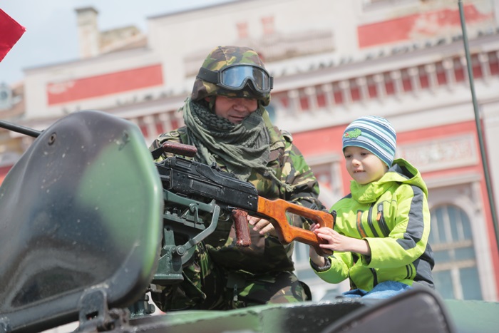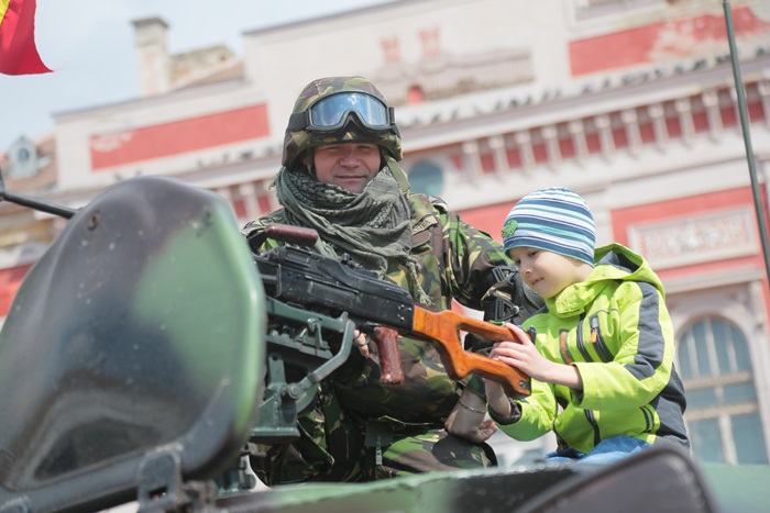 Copiii au fost ajutati de militari sa urce in TAB-uri si sa experimenteze viata de soldat al Armatei Romane. Tot sub supraveghere ei pot admira armele si alte echipamente de lupta.