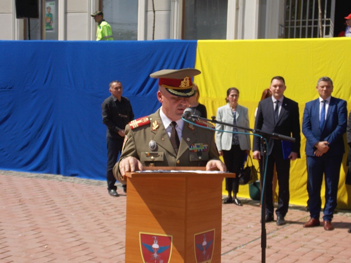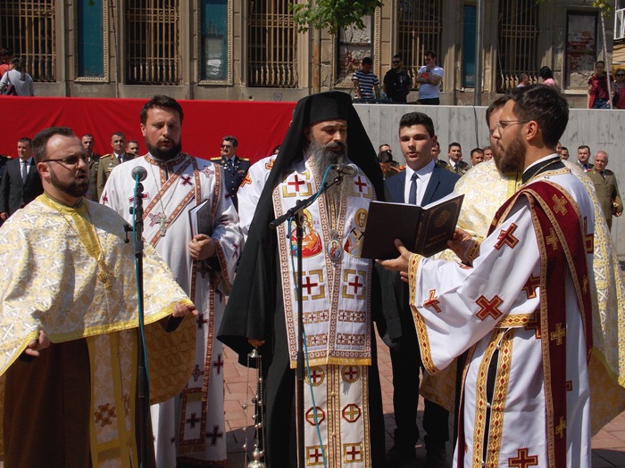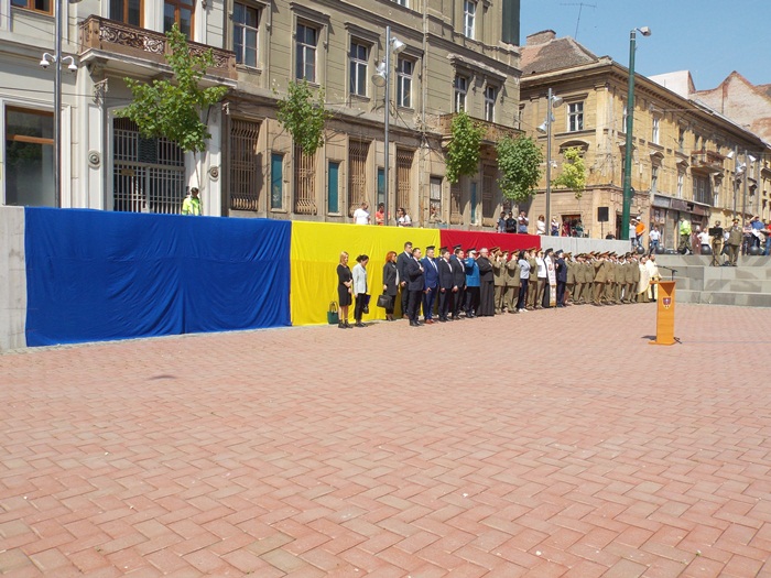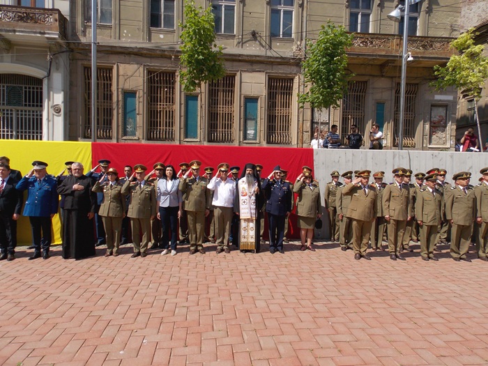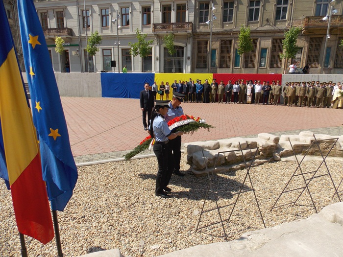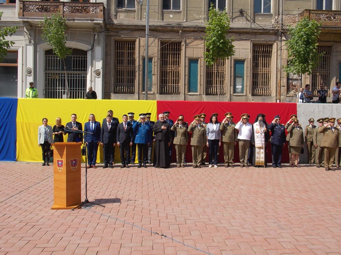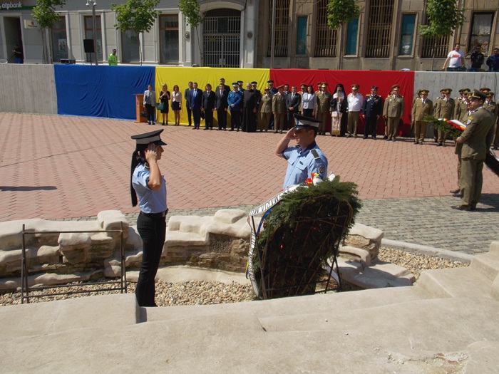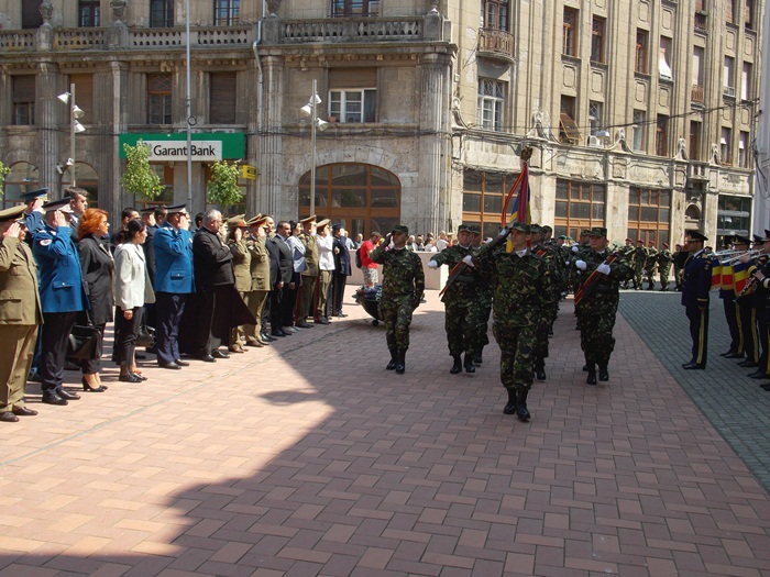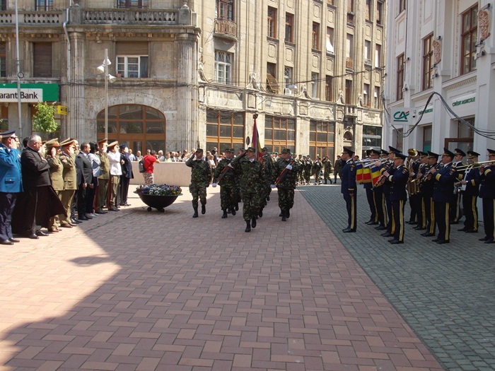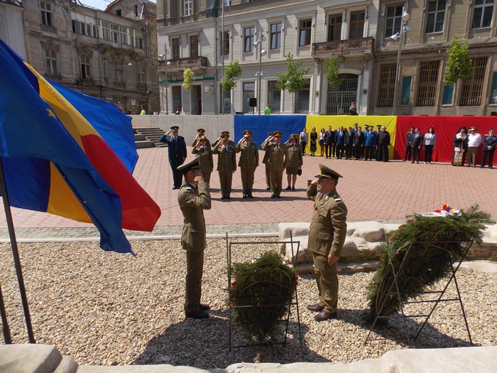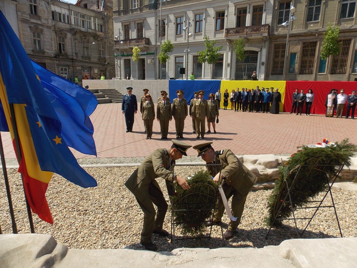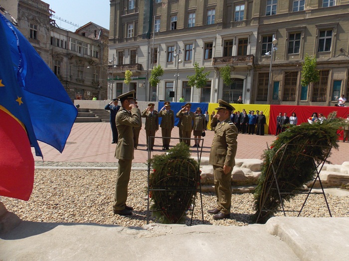 In Piata Sfantul Gheorghe, militarii si reprezentantii administratiei locale si judetene au depus coroane de flori si au asistat la un ceremonial religios.
