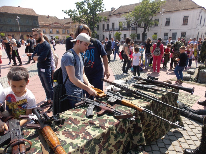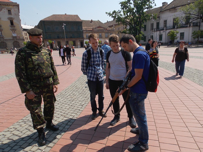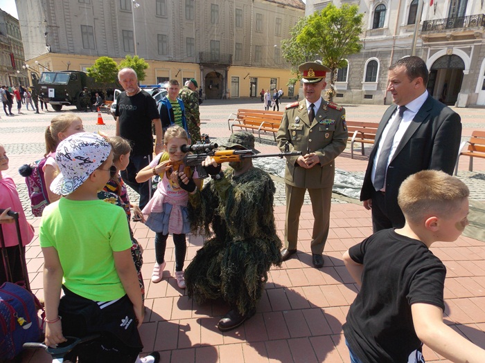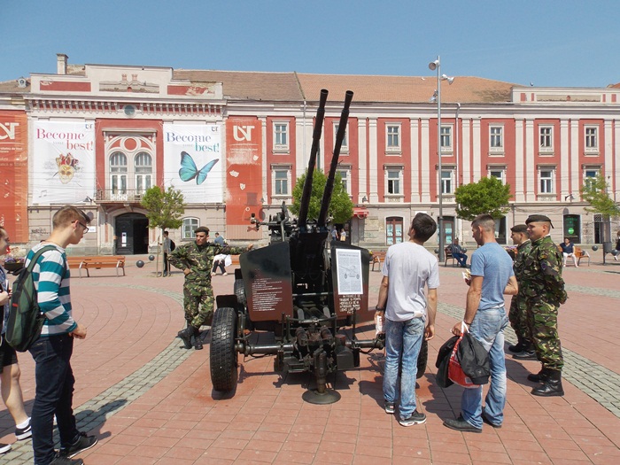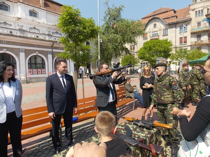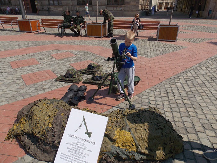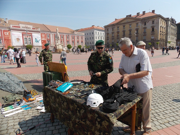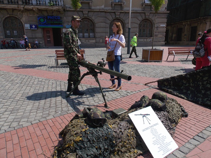 Intre timp, in Piata Libertatii, timisorenii au putut vizita standurile amenajate de militari pe care au fost expuse armele sau tehnica pe care acestia o folosesc in activitatea lor.
