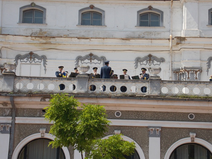 Timisorenii care au trecut prin Piata Libertatii au putut asculta muzica de fanfara pe durata expozitiei de tehnica militara.