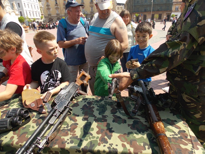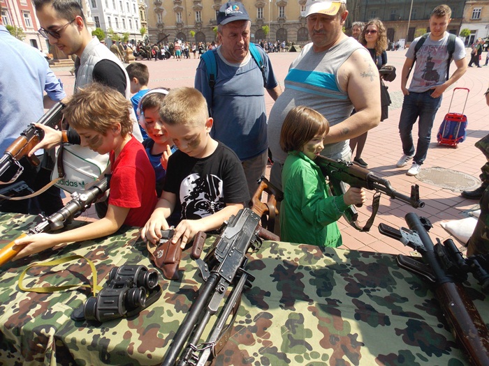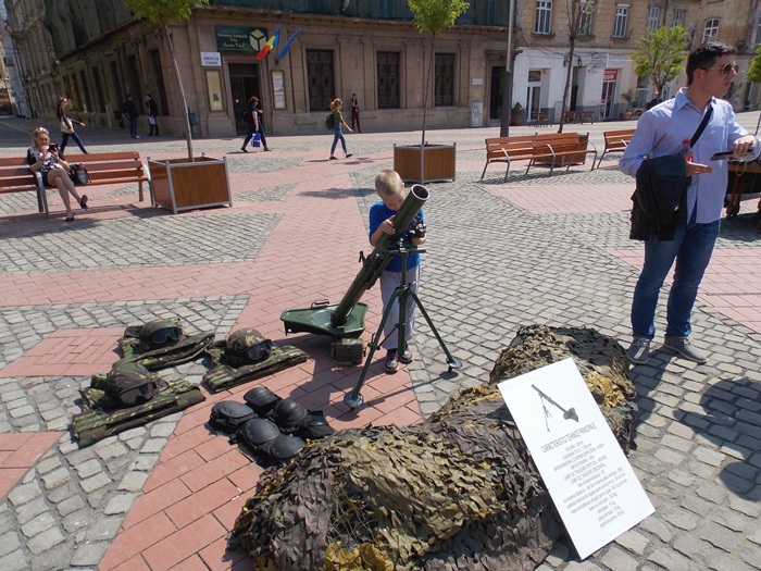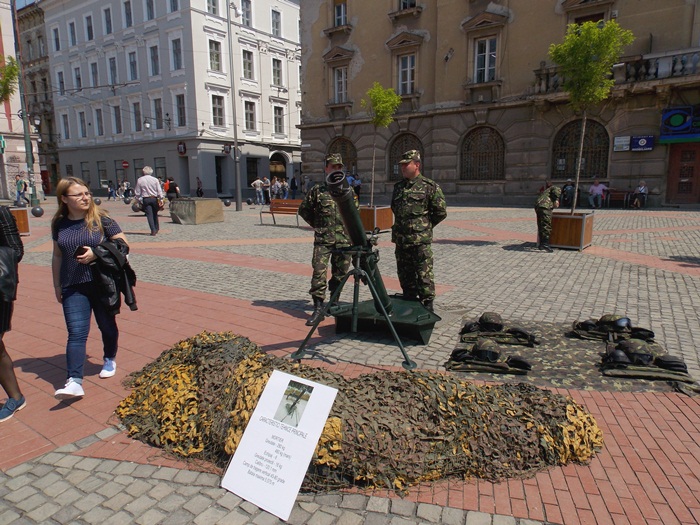 Spre deosebire de anii trecuti, de aceasta data, pe langa expozitia de arme, in Piata Libertatii a fost amenajata si una de caricaturi.