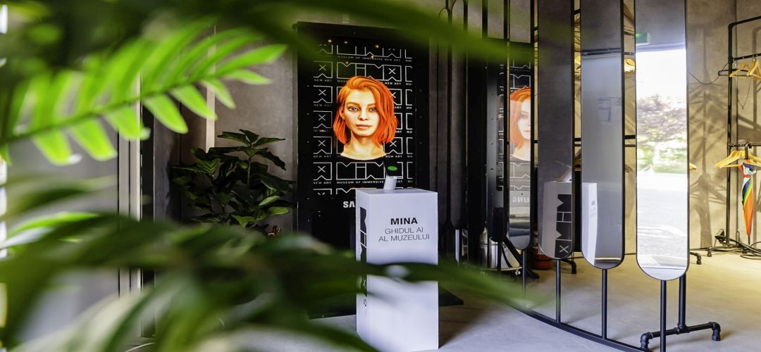 Vizitatorii MINA Pop-Up vor fi întâmpinați în lobby-ul spațiului expozițional de către MINA, un ghid dezvoltat pe baza celor mai eficiente și celor mai noi modele de rețele neurale. Pe lângă ChatGPT, au fost integrați mai mulți algoritmi de inteligență artificială pentru fiecare componentă din pipeline-ul său, prin care este animat în timp real chipul avatarului 3D, transformând ceea ce spune în animația prin care clipește și mișcă gură. Toate aceste lucruri îi permit să interacționeze cu publicul cât mai natural, prin faptul că este capabilă să audă întrebările, să gândească răspunsurile și apoi să le comunice. Experiența se desfășoară în timp real, iar vizitatorii pot purta o conversație cu un avatar umanoid futurist. Fiecare conversație este unică, reflectând complexitatea și adaptabilitatea acestei entități AI.