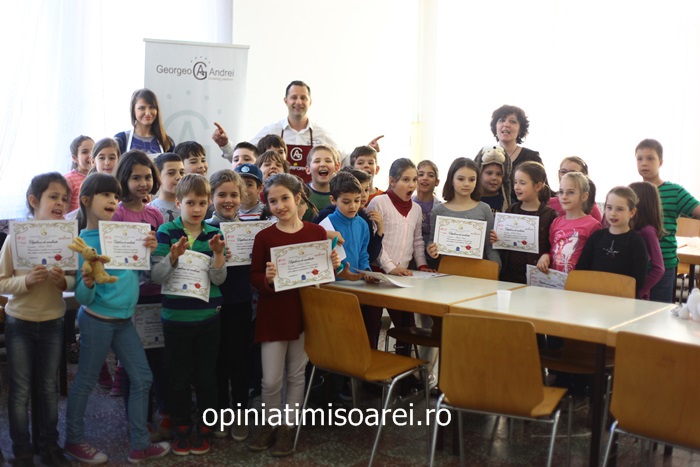 „Imi doresc sa le insuflu si micutilor pasiunea mea pentru gatit, de aceea am inceput acest proiect. Vrem sa mergem in mai multe scoli, profesorii si directorii de scoli au fost foarte receptivi si bucurosi ca am pus la cale aceasta actiune. Avem doritori si la alte scoli, aceste cursuri pot fi facute chiar si la elevii de liceu si, de ce nu, chiar si la facultate”, ne-a mai spus Georgeo Andrei.