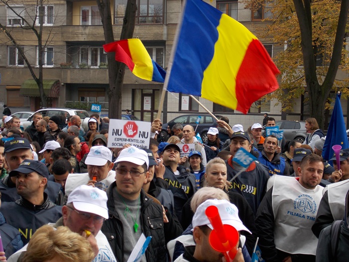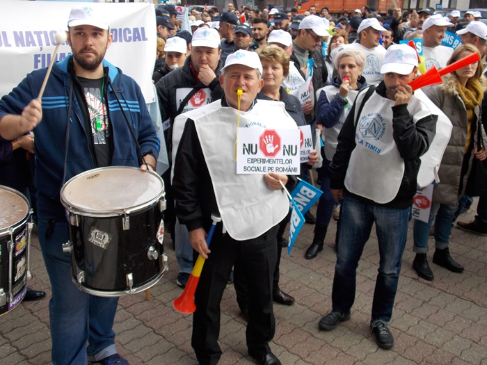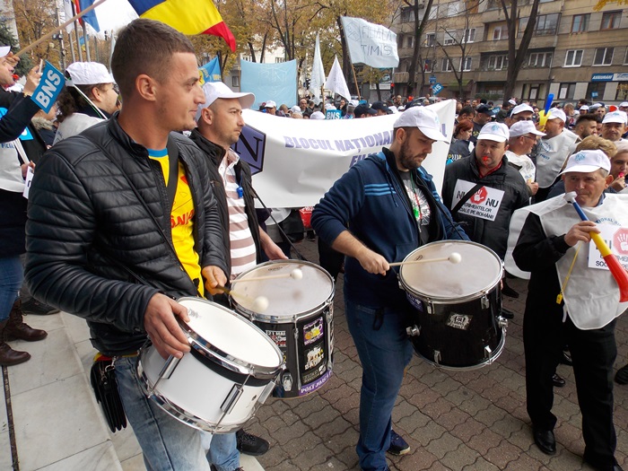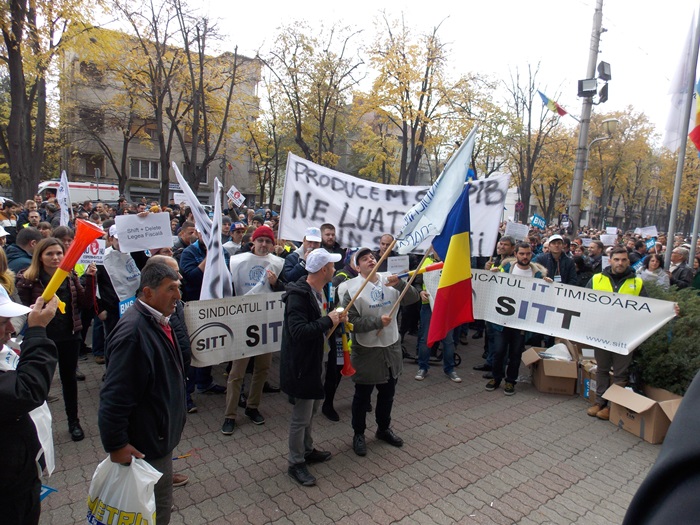 TIMISOARA. Sute de sindicalisti au iesit in strada la Timisoara vineri. Acestia s-au strans in fata Prefecturii judetului, la chemarea Blocului National Sindical.