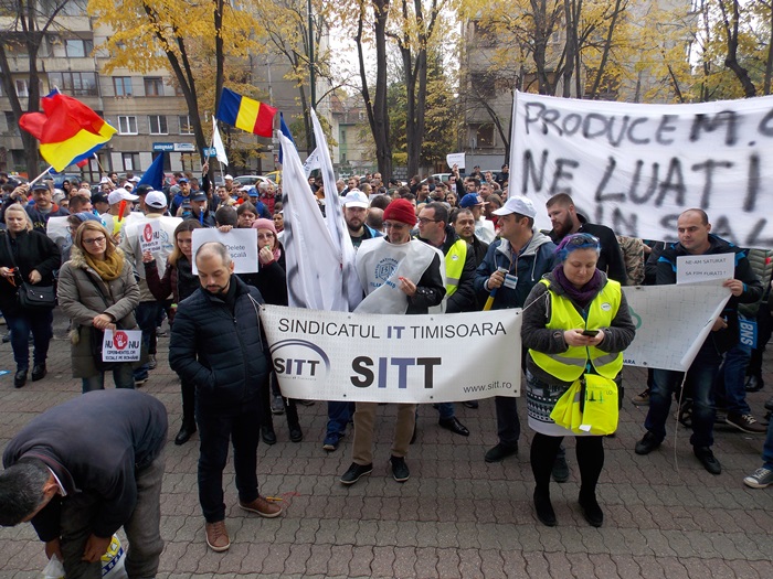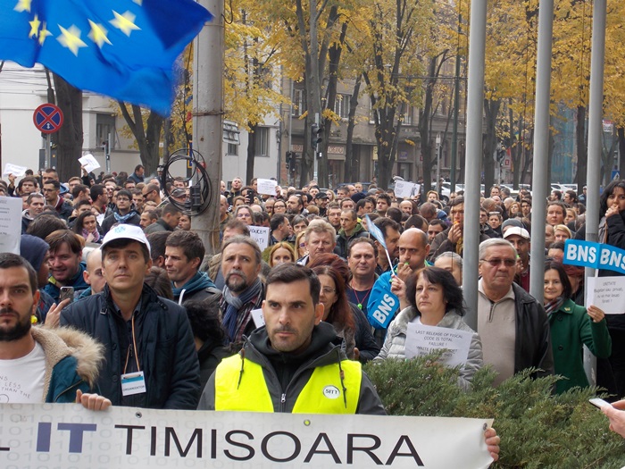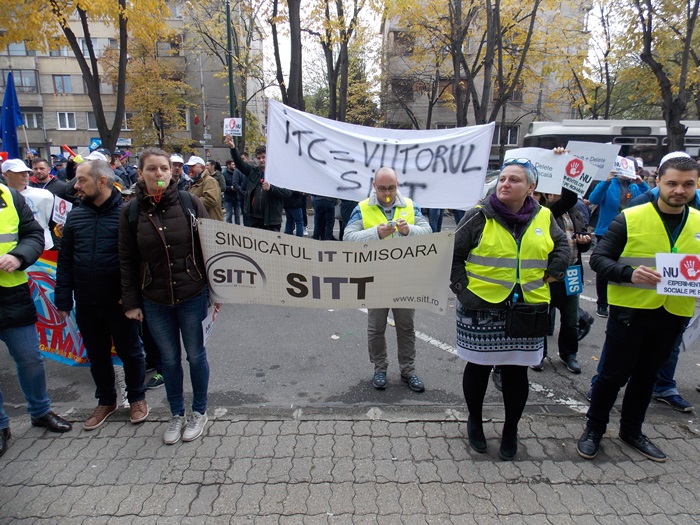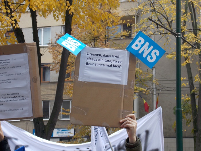 Sindicalistilor de la BNS li s-au alaturat si reprezentanti ai Sindicatului IT din Timisoara.