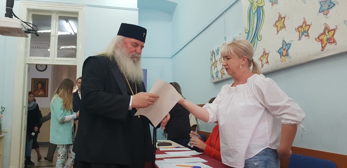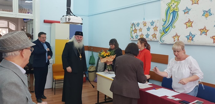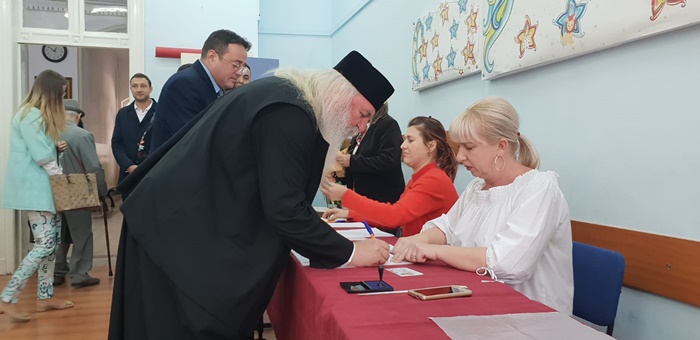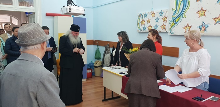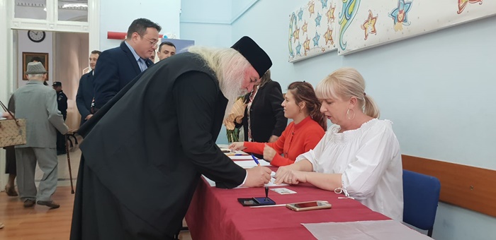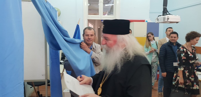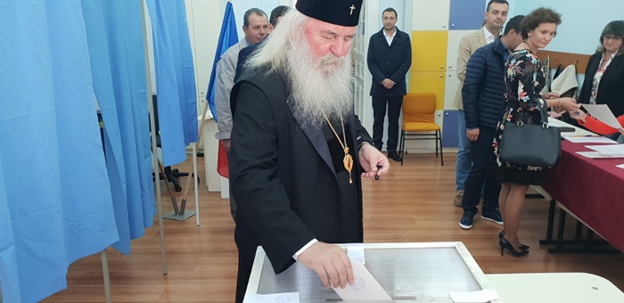 In jurul orei 12.30, mitropolitul Banatului a mers la sectia de votare de la Colegiul Loga.