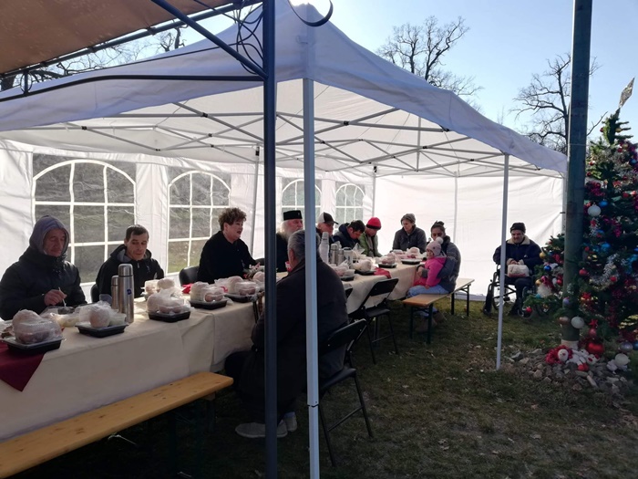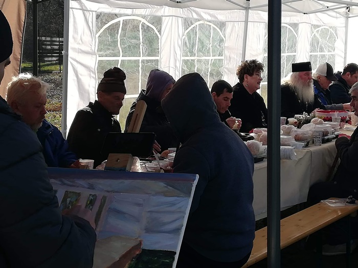 Mitropolitul Banatului a plecat apoi catre Padurea Verde, la Centrul de Suport pentru Situatii de Urgenta/Criza. Aici a servit o portie de mancare calda alaturi de oamenii care locuiesc in cele 11 containereracordate la utilitati. Mitropolitul a fost primit si cu un scurt program artistic. Momentele petrecute aici au fost si imortalizate intr-un tablou realizat de Sebastian Alexa, educator intr-un centru al Directiei de Asistenta Sociala.