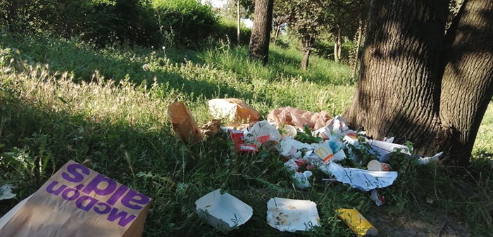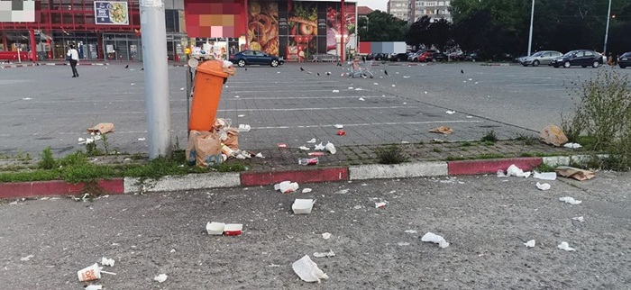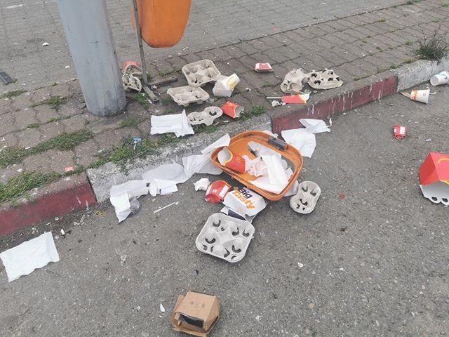 Apoi resturi din ambalajele din care au fost servite mancarea si bauturile racoritoare sunt imprastiate si pe trotuarele din apropiere.