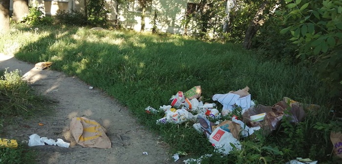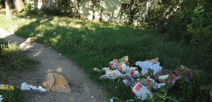 Ambalaje de carton sau plastic zac imprastiate peste tot. Daca cosurile de gunoi au fost umplute pana la refuz, restul ambalajelor sunt lasate abandonate langa acestea sau aruncate prin parcare.
