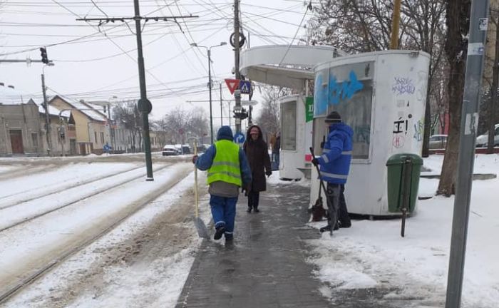 “Tinand cont de ninsorile din noaptea trecuta si din cursul zilei de astazi, Societatea de Transport Public Timisoara a mobilizat peste 50 de angajati, care participa la actiunea de deszapezire si curatire a statiilor si refugiilor, pentru a asigura conditii cat mai bune timisorenilor care apeleaza la serviciile de transport public local. Angajatii S.T.P.T. intervin in cele 520 de statii incepand cu noaptea trecuta pana in prezent, acestia fiind in alerta cat timp va ninge. S.T.P.T. asigura buna desfasurare a transportului public local prin interventia la indepartarea zapezii de pe anumite tronsoane ale liniei cale si la dezghetarea macazurilor pentru retelele de tramvaie si troleibuze”, transmit representantii STPT.