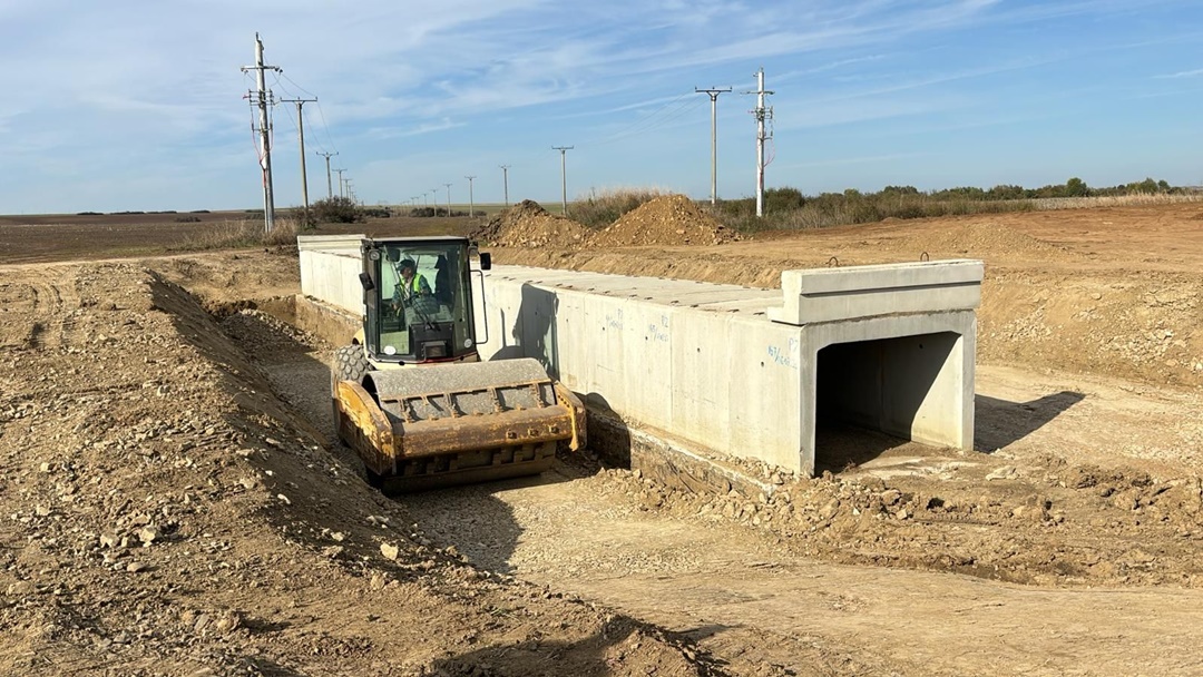 “Saptamana aceasta s-a intensificat activitatea pe santierul drumului de legatura DN 69 – A1. Se aprovizioneaza cu materialele necesare lucrarilor (prefabricate, piatra sparta si balast), continua lucrarile de stabilizare a terenului, decopertarea si evacuarea materialului, compactarea terenului, realizarea de umpluturi“, transmit reprezentantii Directiei Regionale de Drumuri si Poduri Timisoara.