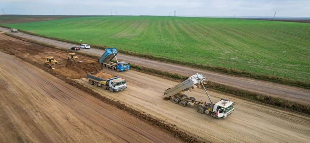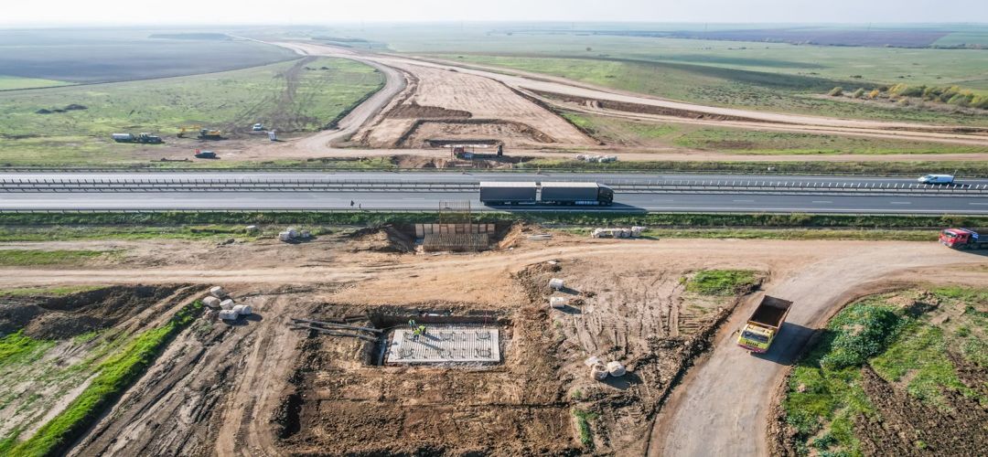 “Pe santierul drumului de legatura dintre autostrada A1 si DN 69 Timisoara – Arad, luna octombrie se incheie cu un stadiu de realizare a lucrarilor de aproape 17%. Antreprenorul Todini Costruzioni S.p.A a avut o mobilizare mai buna in aceasta luna si a facut lucrari la terasamente si podete.