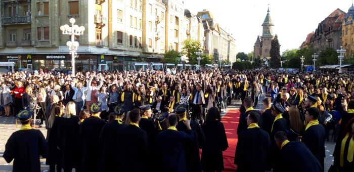 La universitatea de Vest din Timisoara, Gala absolventilor este deja traditie. Pana anul trecut, aceasta s-a desfasurat in Parcul Rozelor, iar acum pentru prima oara ceremonia s-a tinut in centrul orasului.