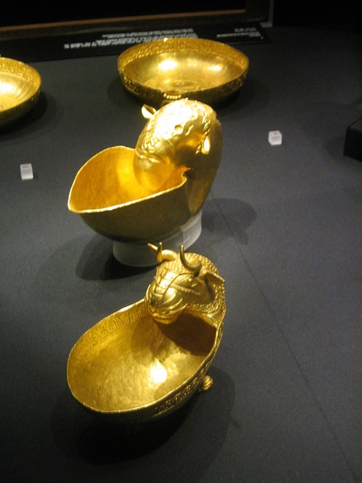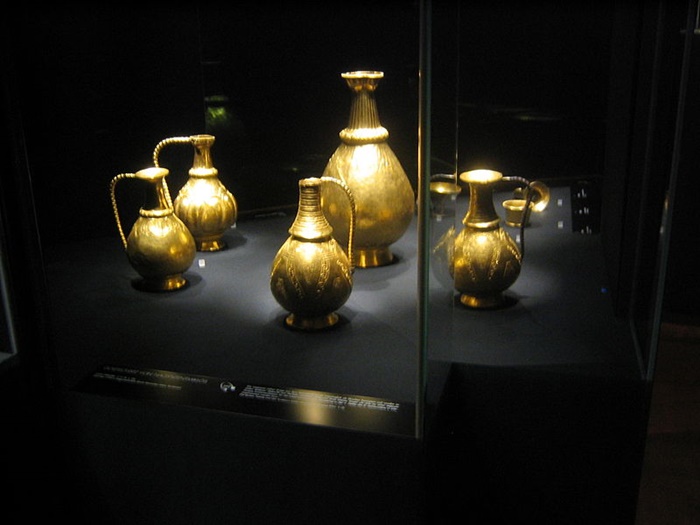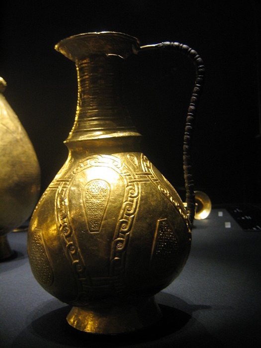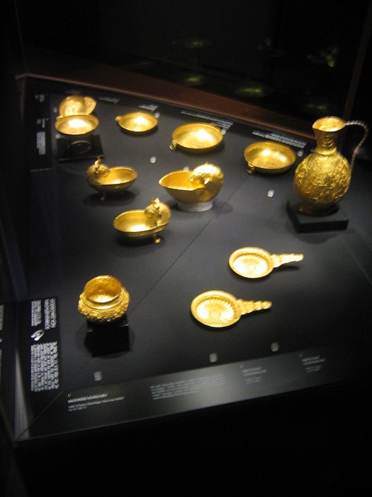 Tezaurul este alcatuit din sapte ulcioare, ornamentate cu figuri florale, mitologice si geometrice, sapte vase joase – doua farfurii mai mari, doua mici, doua patere si un platou oval -, un bol cu o lucratura extrem de sofisticata, trei pocale, dintre care doua cu un cap de taur rasucit, privind inapoi si sprijinite pe trei picioare, iar un al treilea, in forma de scoica, doua potire, doua cani si un corn in forma de palnie. Majoritatea au inscriptii: in greaca, in limbi locale, dar cu alfabet grecesc, inca nedescifrate satisfacator, insemne cu aspect de rune, de asemenea nedescifrate intrutotul.