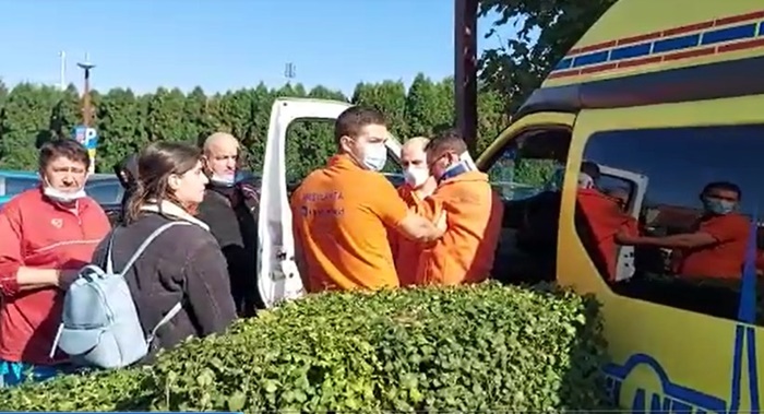 Ambulanta implicata in accident este una privata, nu apartine Serviciului Judetean de Ambulanta Timis, si este folosita doar pentru transportul pacientilor. In momentul accidentului nu avea bolnavi la bord.