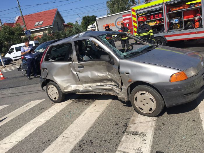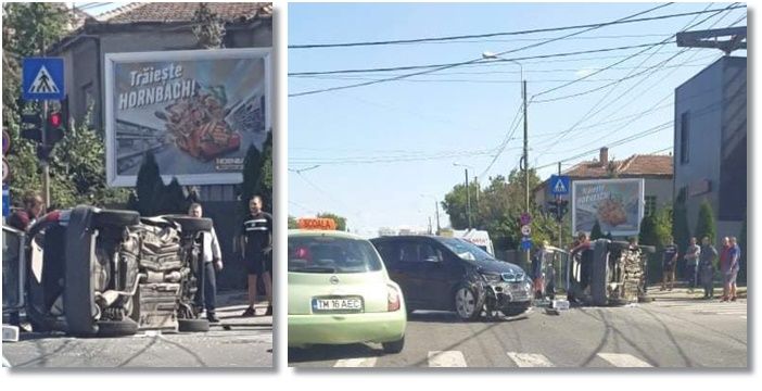 Doua masini s-au ciocnit, iar in urma impactului, unul dintre autoturisme s-a rasturnat in mijlocul drumului. Totul s-a intamplat dupa ce un sofer care a virat la stanga, sa intre pe strada Salcamilor, nu s-a asigurat, nu a acordat prioritate, si a izbit in plin de o alta masina care circula regulamentar.