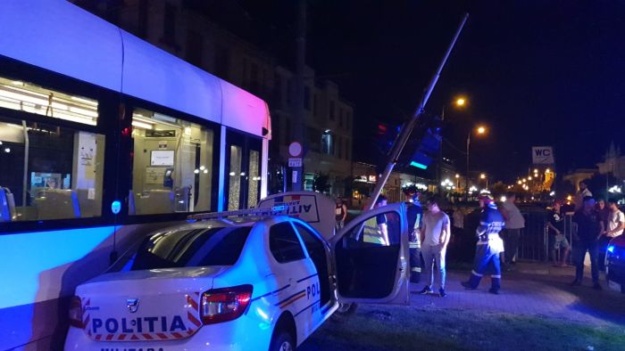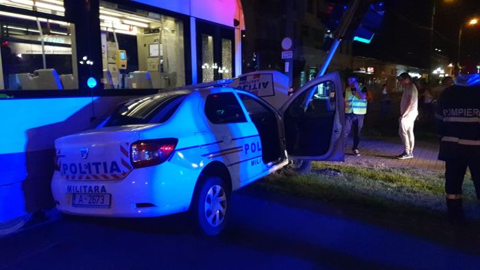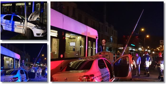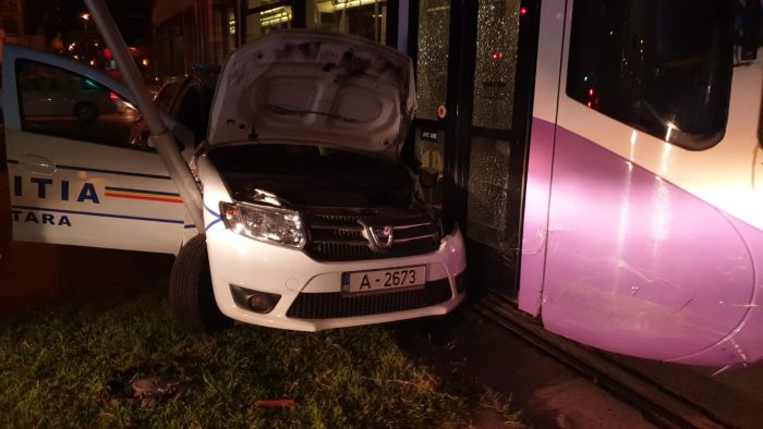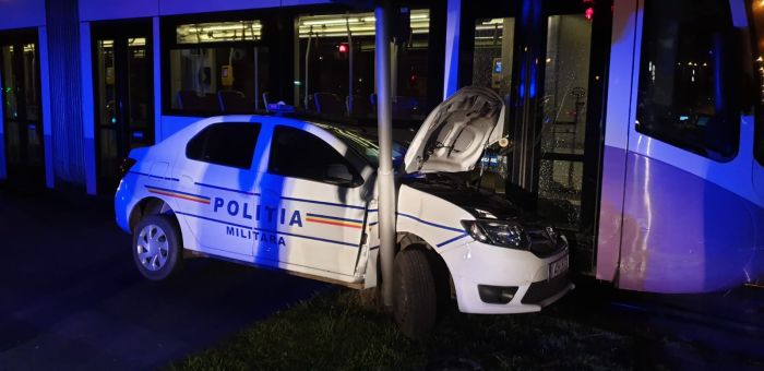 TIMISOARA. Accident de circulatie luni seara la Timisoara. O masina de Politie Militara si un tramvai Armonia s-au izbit violent in sudul orasului, dupa podul Muncii.
