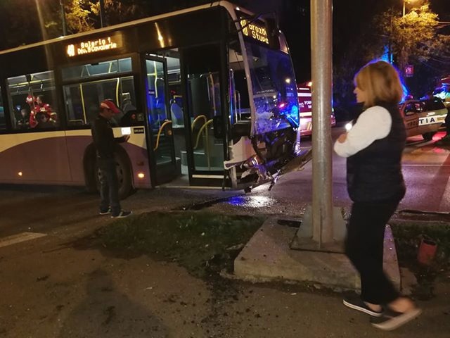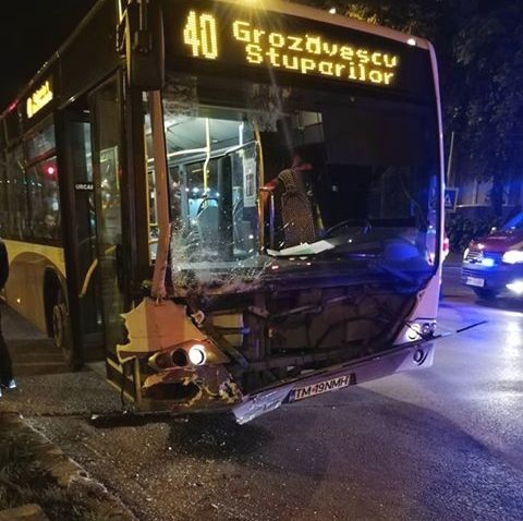 Un autobuz de pe linia 40 a fost izbit violent de un Passat, al carui sofer a patruns in intersectie, se pare, pe culoarea rosie a semaforului, venind dinspre Take Ionescu.
