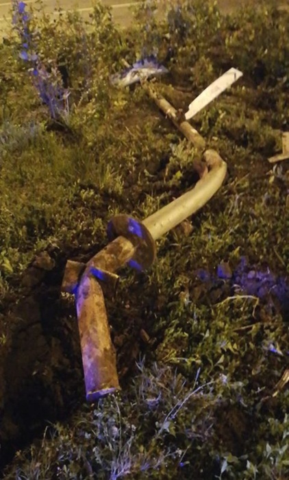 In urma impactului, Passatul a zburat intr-un stalp de pe marginea drumului, pe care l-a daramat, iar masina s-a facut praf.