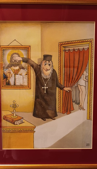 O sectiune aparte este reprezentata de caricatura veche, in timp ce o alta este dedicata personalitatilor din tara noastra, desenate de artisti din strainatate.