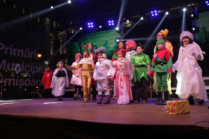 TIMISOARA. Cadouri multe, colinde si un spectacol de teatru, cantece si dansuri pentru copii. De asta au avut parte prichindeii Timisoarei in sambata dupa – amiaza, in Piata Operei.