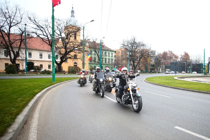 Traseul ales a fost de cativa km, iar motociclistii au respectat toate regulile de circulatie. Odata ajunsi in parcarea unui centru commercial de la marginea orasului, bikerii, membri ai tuturor cluburilor din Timisoara, si-au parcat motoarele ca la o expozitie si s-au bucurat impreuna de revederea de la final de an, perioada in care obsinuiau sa mearga cu daruri la copiii necajiti din judet.