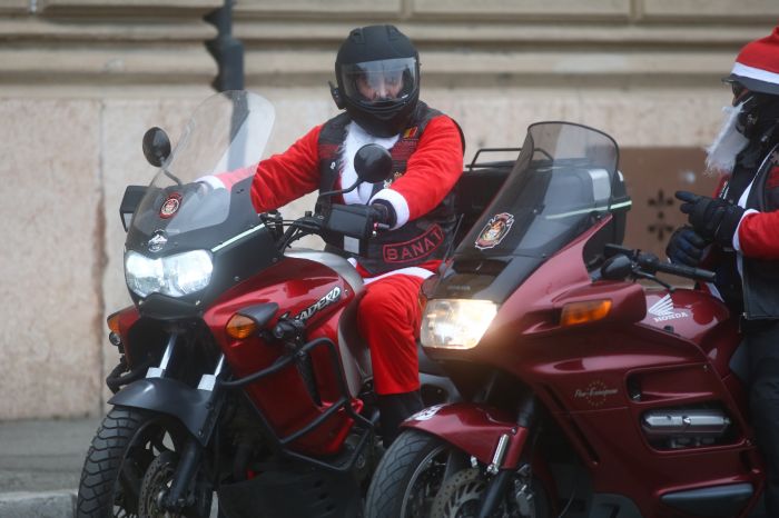 TIMISOARA. Au vrut sa pastreze traditia chiar si in pandemie. Aproape 100 de bikeri s-au costumat in Mos Craciun sau in Craciunita, dupa caz, si s-au adunat la parada anuala a motociclistilor tinuta in fiecare an la Timisoara inainte de sarbatori.