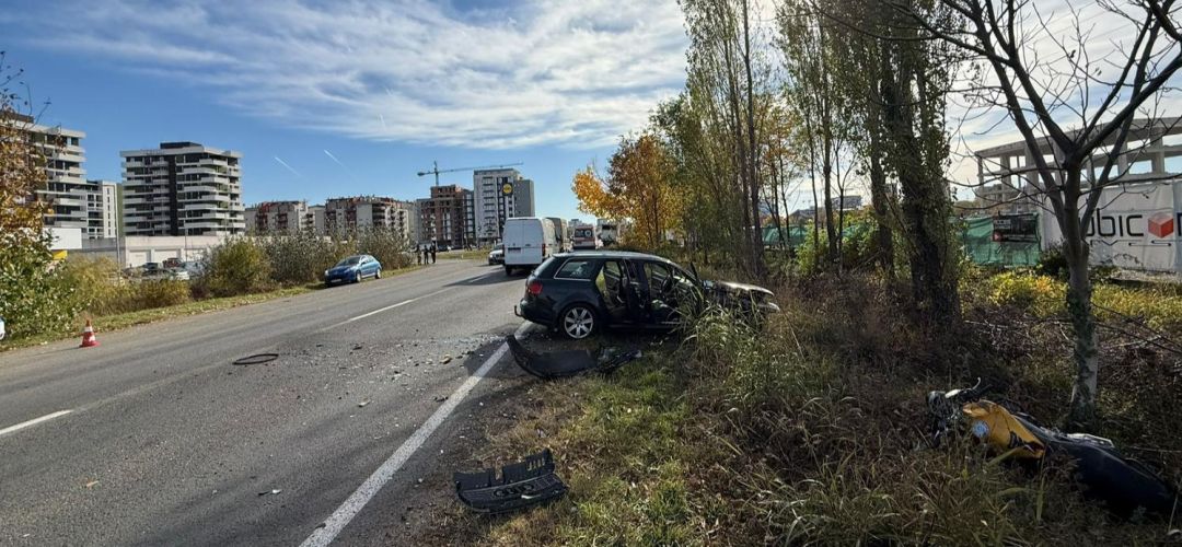 TIMIȘOARA. Accident de circulație la ieșire din Timișoara, joi dimineață. Un motociclist a fost lovit de o mașină pe Calea Torontalului.