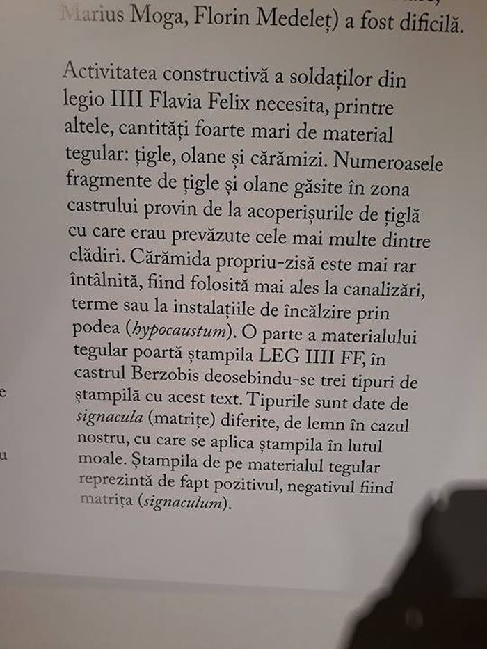 “In cadrul expozitiei pot fi vazute stampile tegulare romane, pe caramizi, pe tigle. Toate sunt din colectia Muzeului National al Banatului. Se comemoreaza 1900 de ani de la moartea imparatului Traian, primul imparat care a construit in Dacia, este cel care a pus bazele Daciei romae si publicul poate vedea aceste tigle si caramizi si pavaj antic. Au fost gasite in siturile din Banat, la Berzovia, Caras- Severin etc“, a declarat Claudiu Ilas, directorul Muzeului National al Banatului.