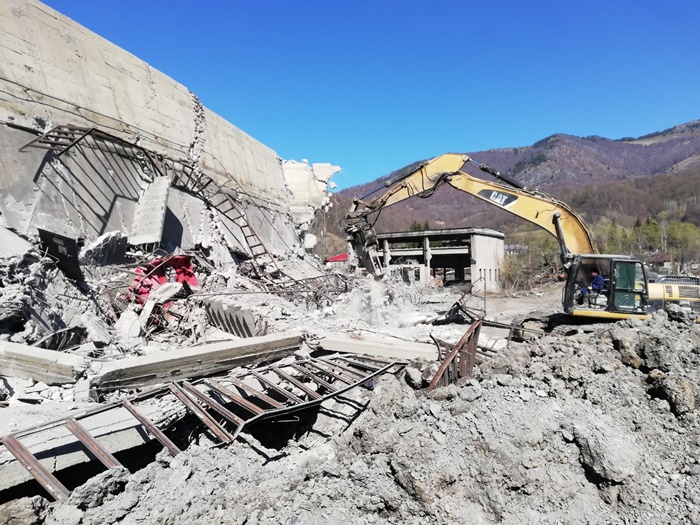 Cu ajutorul echipamentelor aflate in dotarea containerului multi-risc vor fi taiate şi indepartate elementele de daramatura. Concomitent, cu buldozere şi excavatoare aflate in dotarea Exploatarii miniere şi a Primariei Uricani, sunt efectuate acţiuni de indepartare a materialelor de construcţie.