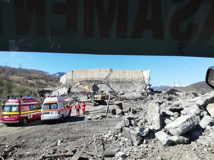 UPDATE: Pana la orele 19.00, cei doi muncitori striviti de tone de moloz nu fusesera inca recuperati. Cei doi aveau 31 si, respectiv, 41 de ani. Aceasta era prima lor zi de munca, iar demolarea turnului care s-a pravalit peste utilajul lor era programat sa fie demolat in cursul zilei de joi.