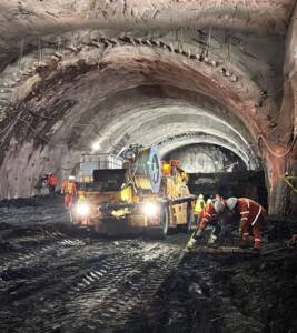 🚧 Tunelul 2 – Continuă excavația în subteran la ambele galerii de intrare, respectiv ieșire, cu lucrările aferente: realizare umbrele, batere ancore, aplicare torcret.