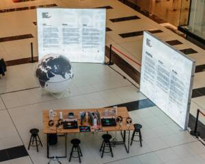 Tema de anul acesta, “Music Around the World”, ne plimbă prin 25 de țări, fiecare cu sunetul ei distinct. Avem o instalație principală, un glob pământesc unde vizitatorii pot conecta căști și asculta muzică autentică din diferite regiuni. Practic, e o călătorie sonoră prin culturile lumii, fără pașaport.