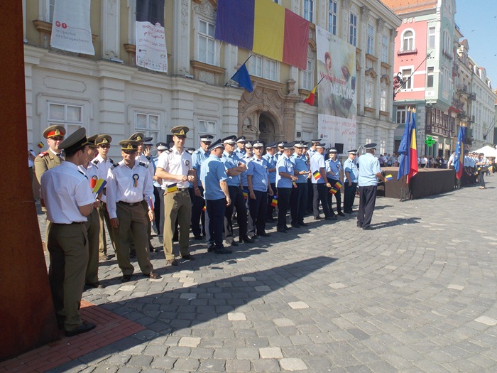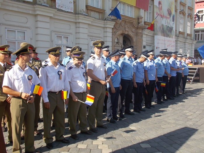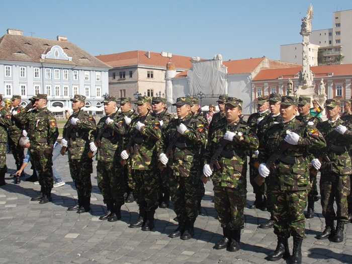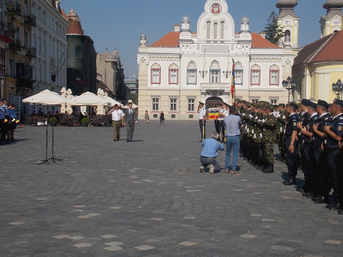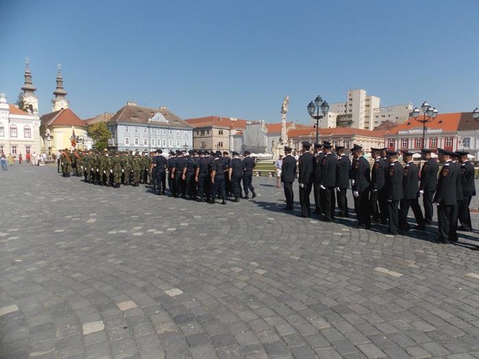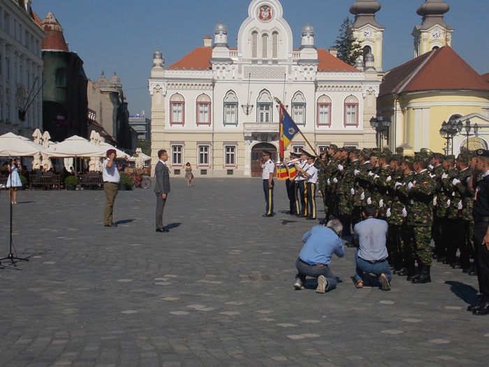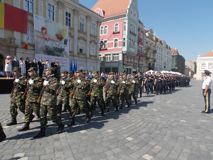 Pe o caldura teribila, militari, jandarmi, politisti, toti echipati in uniforma si cu arma la piept, au fost prezenti in Piata Unirii pentru a le reaminti timisorenilor ca in 3 august 1919 armata romana intra in Timisoara si astfel Banatul se unea cu tara.