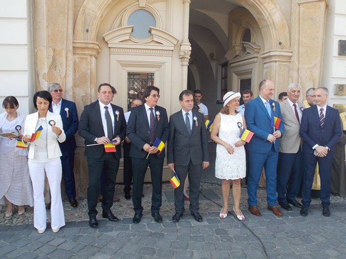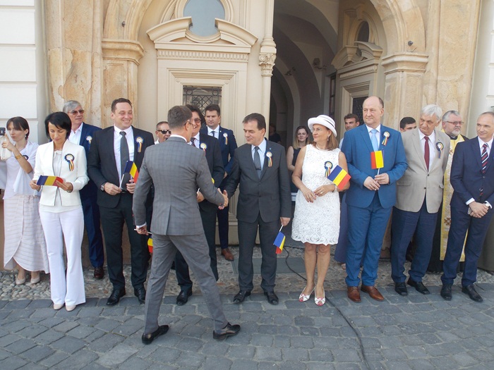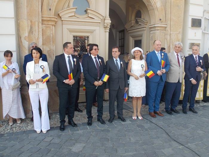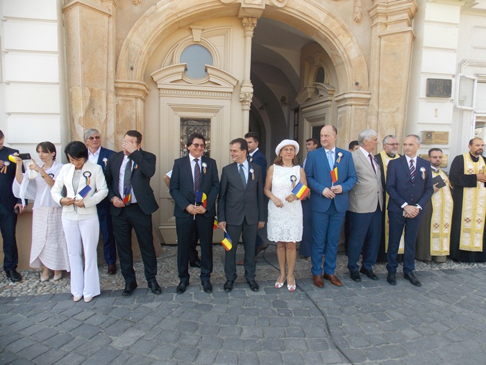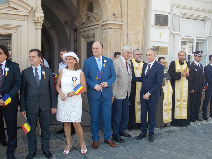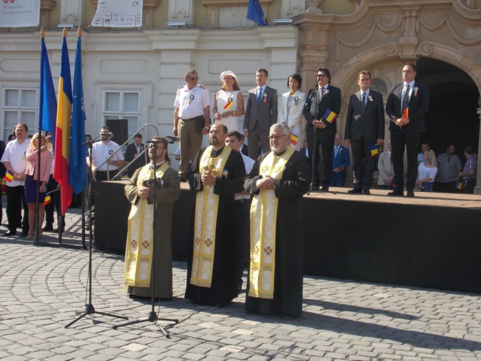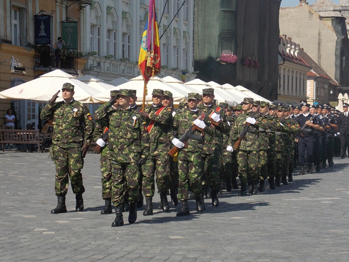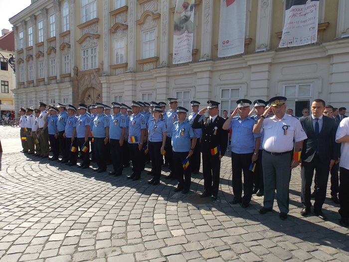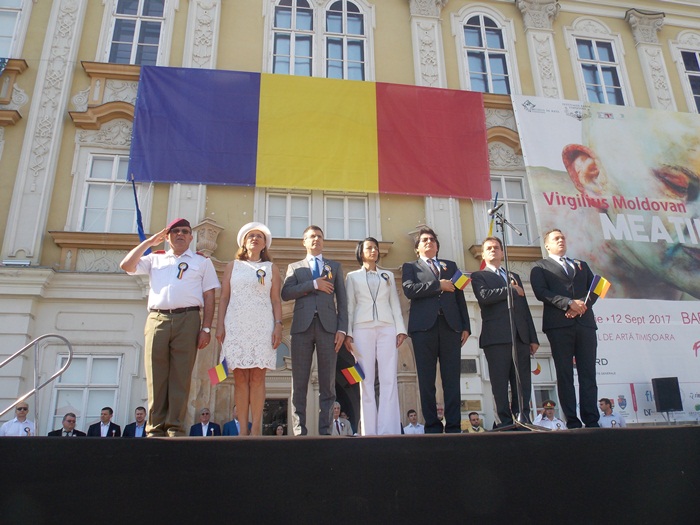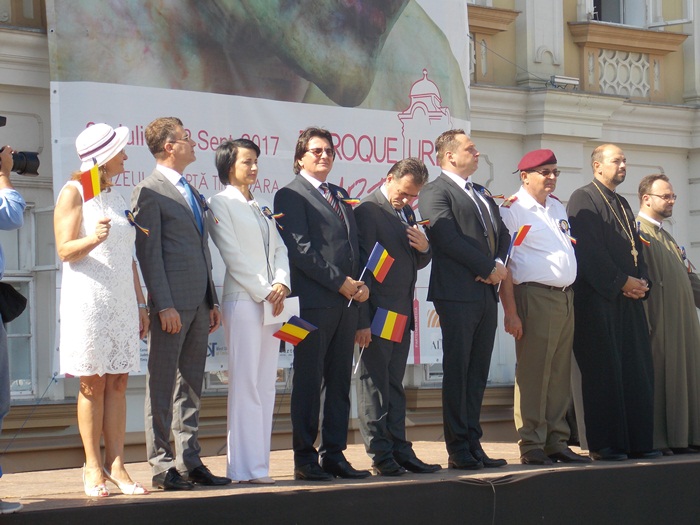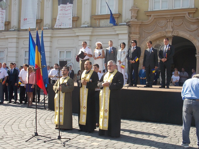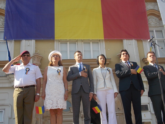 La festivitati au participat oficialitati locale si judetene, parlamentari de Timis si europarlamentari, dar si trei preoti care au oficiat o slujba inaintea defilarii trupelor.