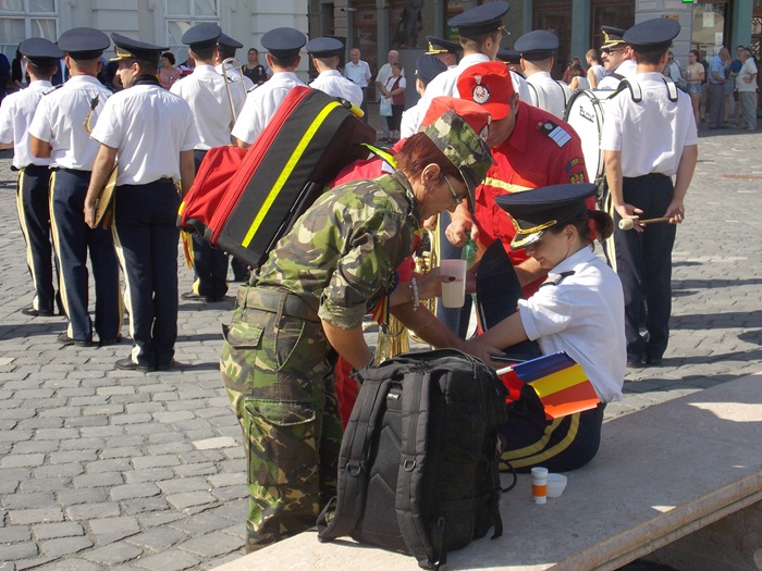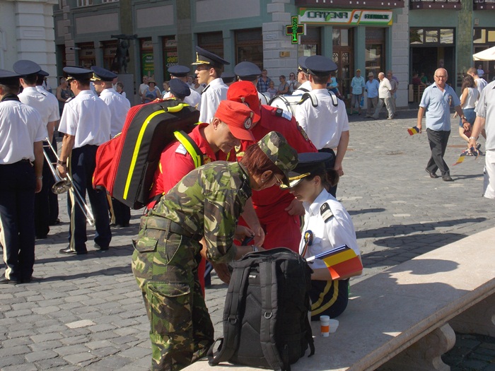 A fost nevoie si de interventia paramedicilor, care i-au acordat ingrijiri medicale unei fete care facea parte din fanfara si careia i s-a facut rau din cauza caldurii. Si-a reluat insa repede locul alaturi de colegi.