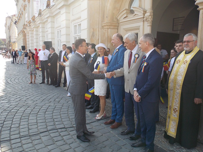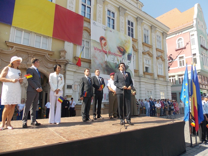 “3 august este o zi speciala, sfanta as spune eu, pentru Timisoara, pentru judetul Timis, pentru Banat si pentru Romania. De ce inclusiv pentru Romania? Pentru ca la 3 august 1919 prin intrarea armatelor romane in Timisoara s-a consfintit trecerea si a acestei parti de tara sub administratie romaneasca si s-a ajuns la acel moment ca tara noastra sa atinga cea mai mare extindere pe care a avut-o in toate timpurile. Trebuie sa avem un gand bun si la adresa marilor personalitati care s-au manifestat in aceeasi directie in lungul timpului, si desigur la cei care au gestionat corect perioada primului razboi mondial si bininteles perioada de dupa razboi, cand s-a incheiat pacea si stau stabilit noile frontiere. Urez de Ziua Timisoarei tuturor timisorenilor la multi ani, multa sanatate, noroc, prosperitate, succese si bucurii. La Multi Ani, Timisoara! La Multi Ani, Romania!“, a declarat primarul Nicolae Robu.