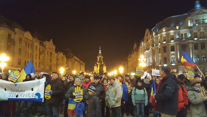 UPDATE: La orele 18.30, in centrul Timisoarei erau adunati peste 1000 de oameni.