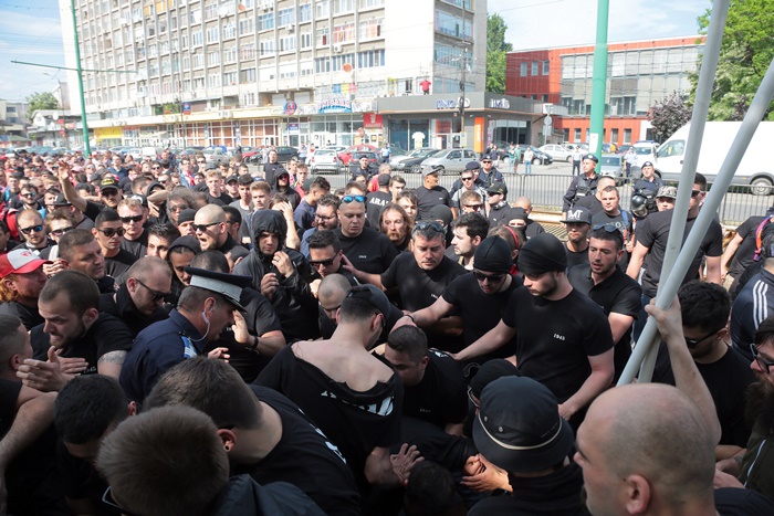 Inca de la coborarea din tren, aradenii au fost insotiti de cordoane de jandarmi si politisti care incearca sa preintampine orice incident violent, data fiind legendara rivalitate dintre cele doua galerii.