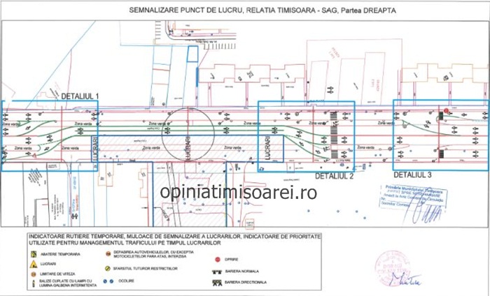 “Avand in vedere lucrarile de amenajare a unui sens giratoriu care va face accesul de pe drumul public la noul centrul comercial situat pe Calea Sagului, in perioada 25.08-22.09.2015, circulatia autovehiculelor va fi deviata astfel: un sens de mers din directia Timisoara – Sag se va desfasura pe drumul axului principal, iar celalalt sens de mers Sag – Timisoara pe bretea. Cele doua directii de mers sunt delimitate de spatiul verde existent”, ne-au declarat reprezentantii Primariei Timisoara.