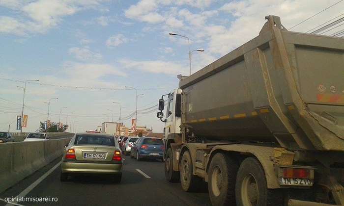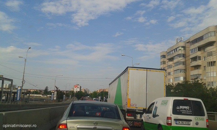 Cele doua benzi de mers, pe Calea Sagului, pe sensul de iesire din oras, sunt blocate pe o bucata de cativa zeci de metri, chiar din dreptul fostei fabrici Dermatina. Masinile sunt directionate sa iasa spre Sag pe cele doua benzi de intrare in oras, iar la urcarea pe pod lucrurile revin la normal, aici restrictiile sfarsindu-se.
