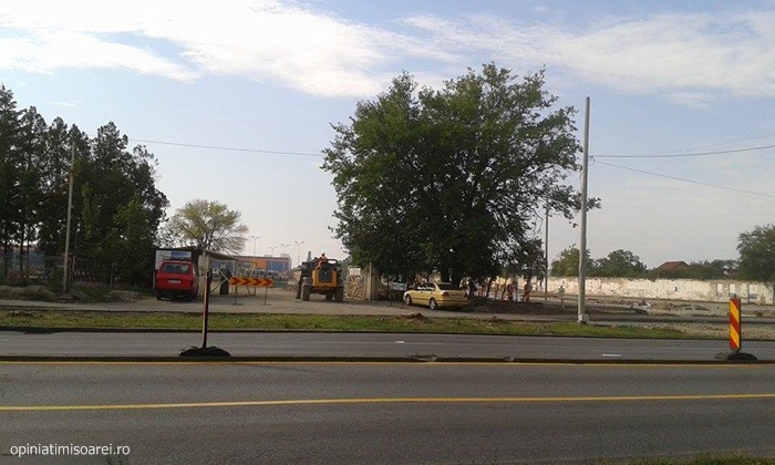 Dupa ce au taiat mai multi copaci pentru a face locul noilor amenajari rutiere, muncitorii contractati de firma care investeste la mall s-au apucat de treaba.
