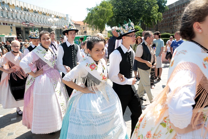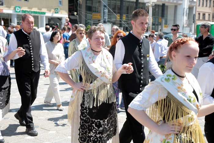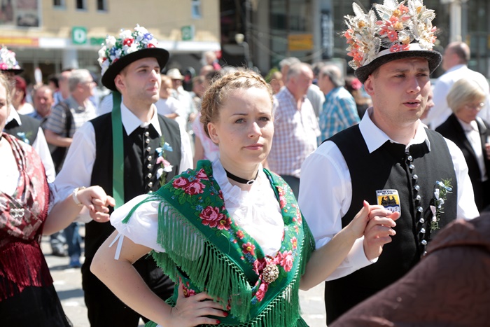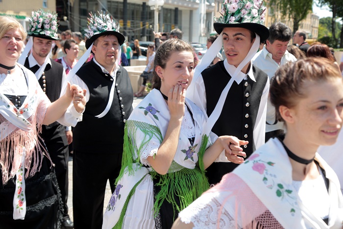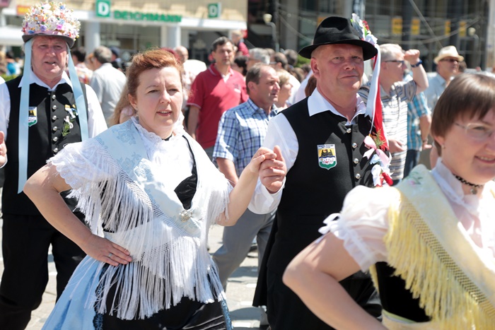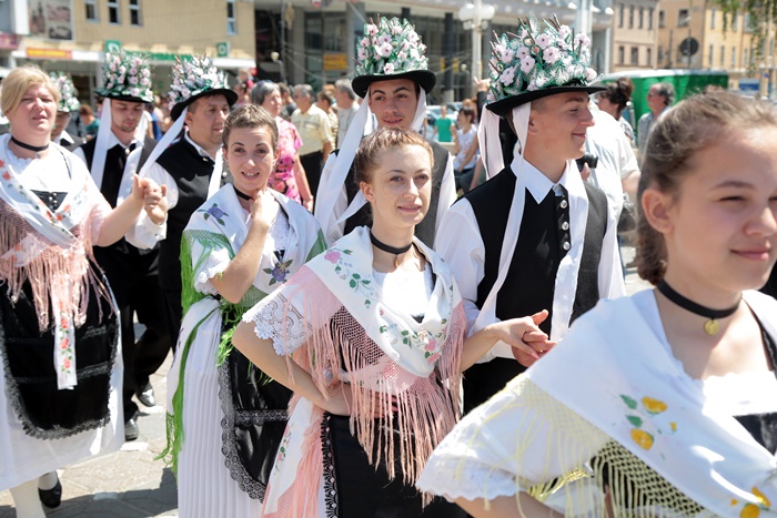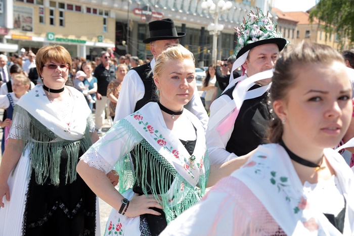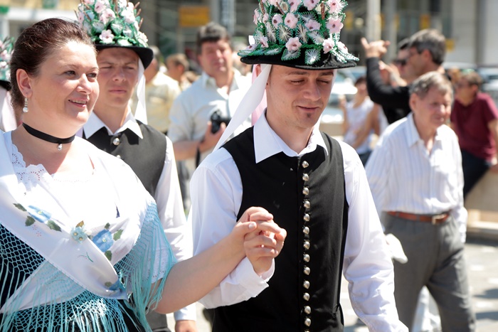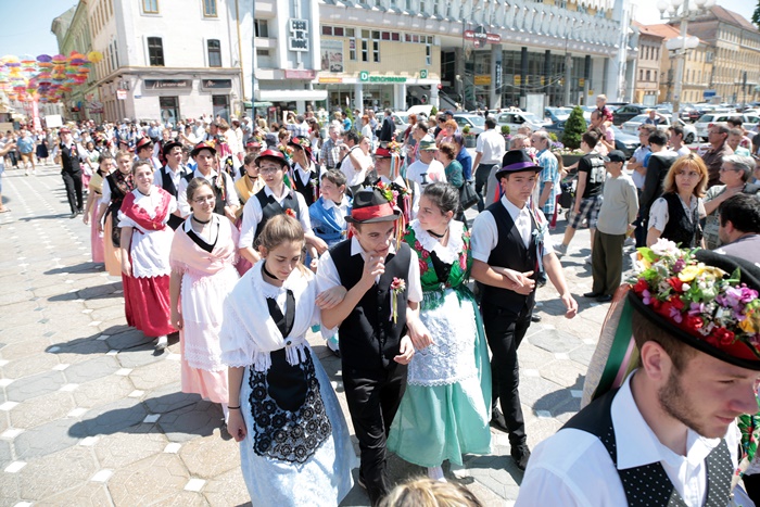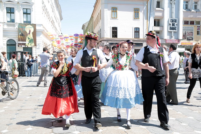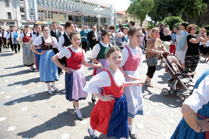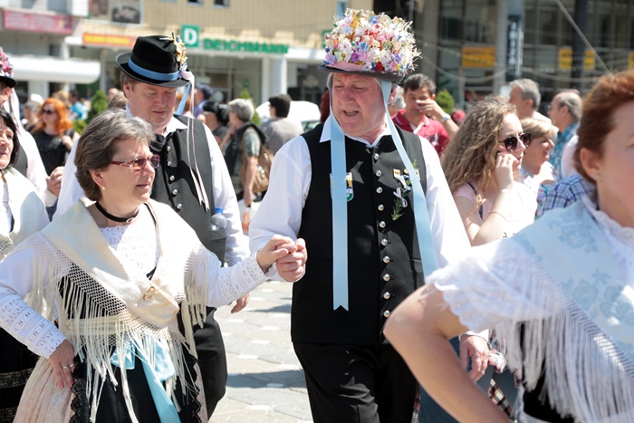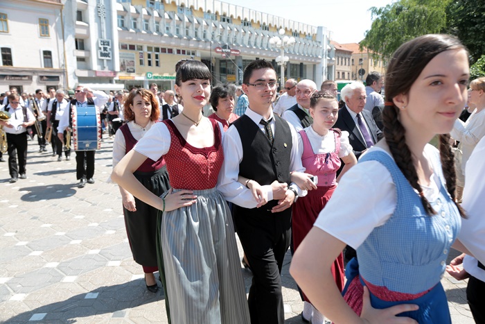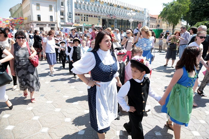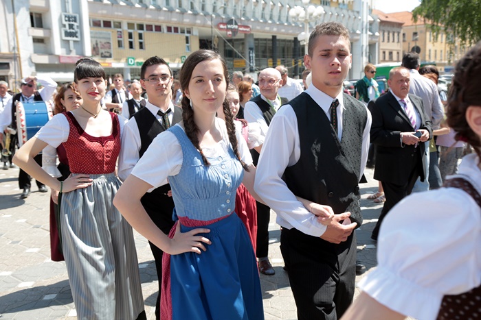 Duminica, la orele pranzului, nemtii din Banat au participat la o parada a portului traditional.