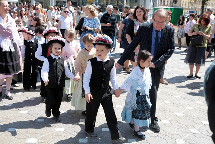 200 de perechi au facut parada in centru si in Piata Libertatii si au fost depuse coroane la monumentul Revolutiei in piata Victoriei.